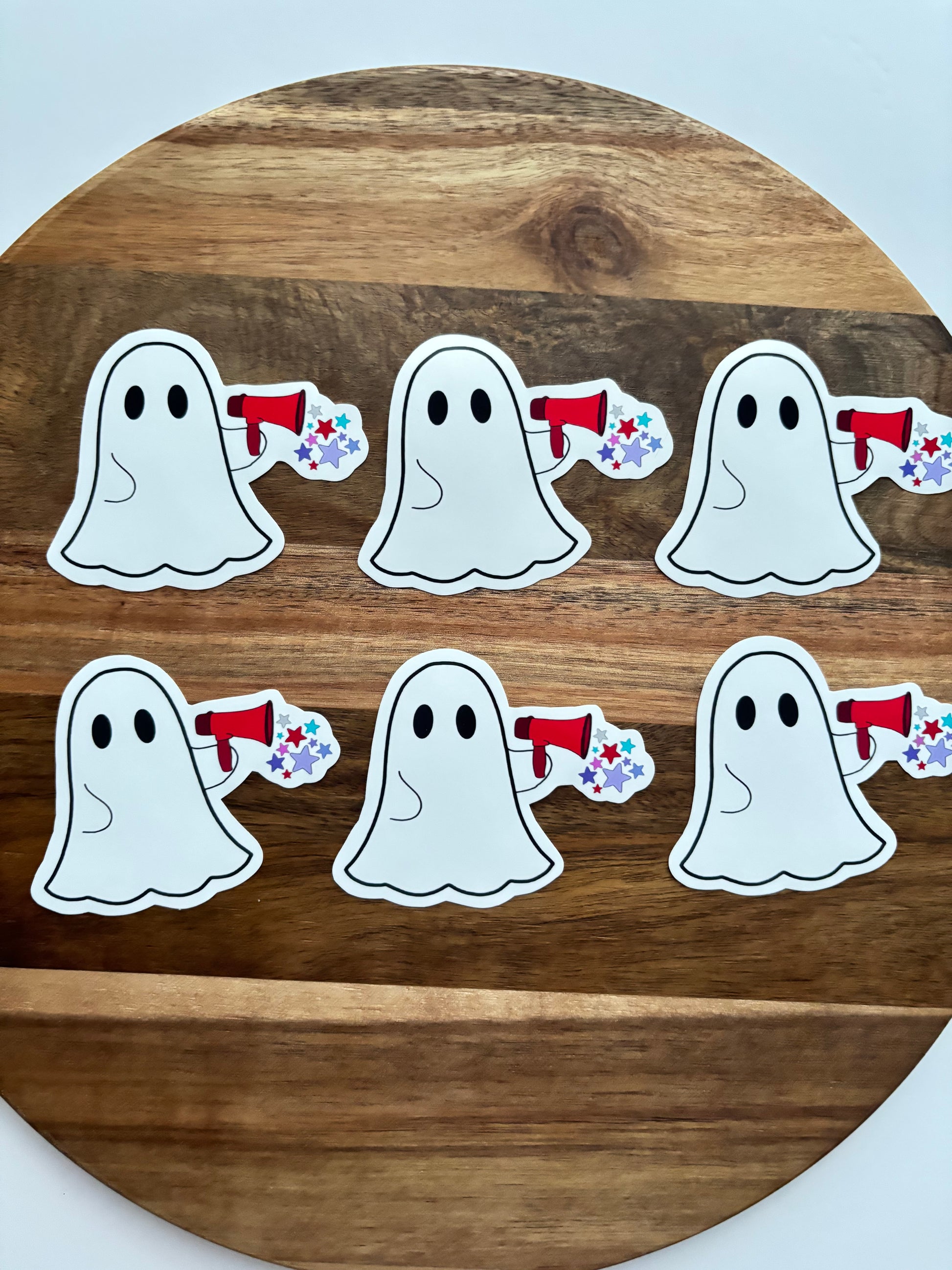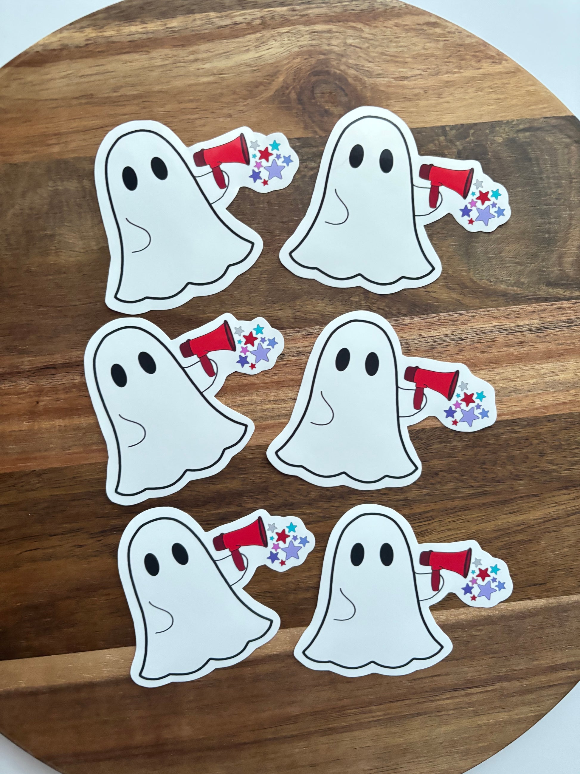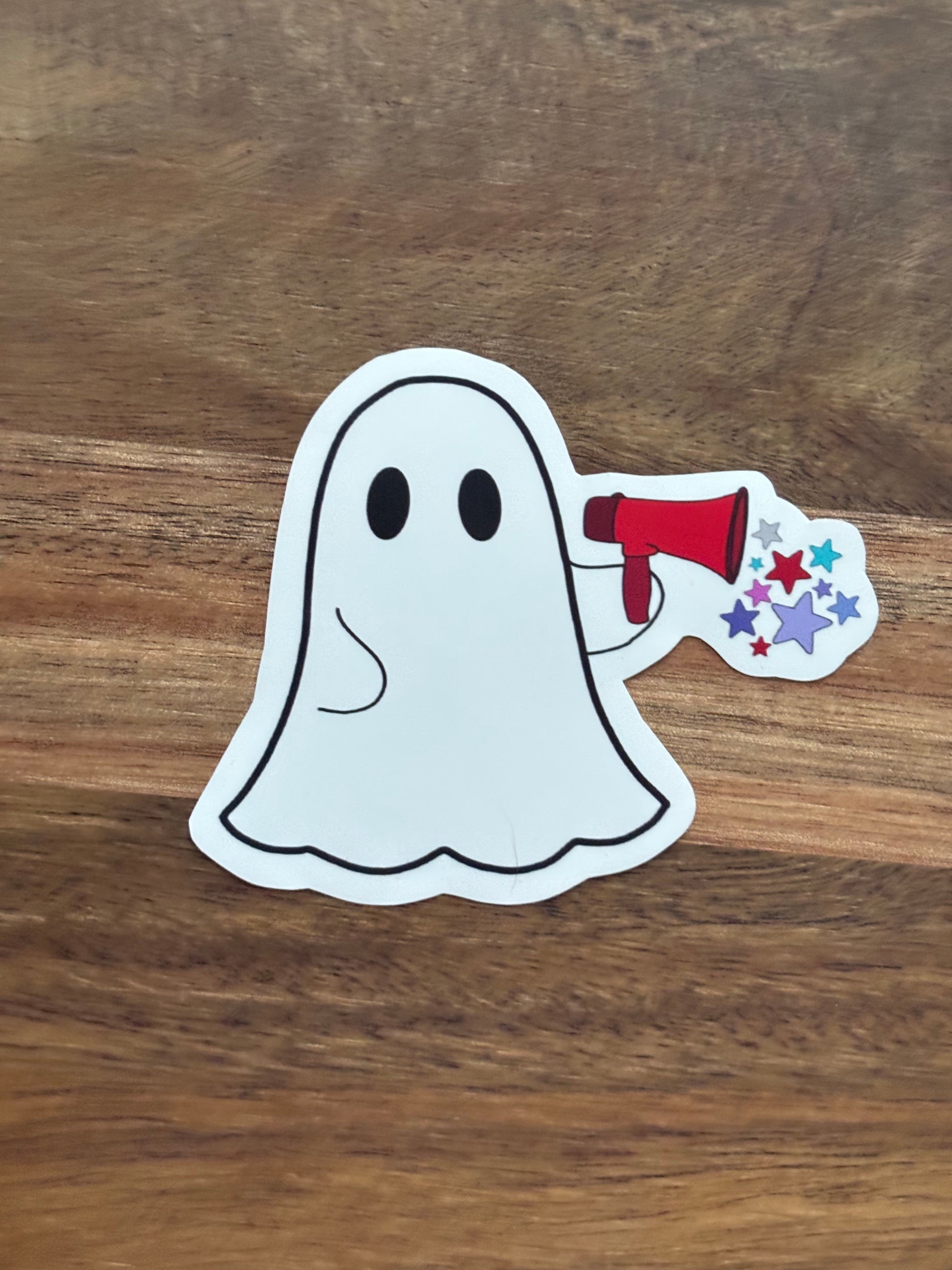 1 Ghost With Megaphone And Stars Laptop Sticker.